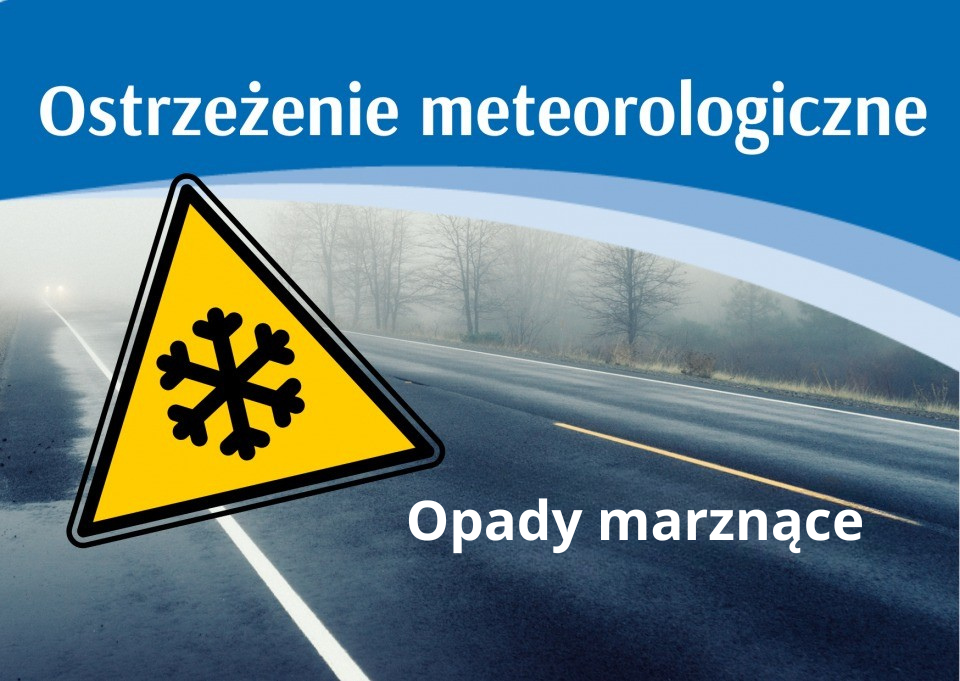 Prognozowane są słabe opady marznącego deszczu lub/oraz mżawki powodujące gołoledź.